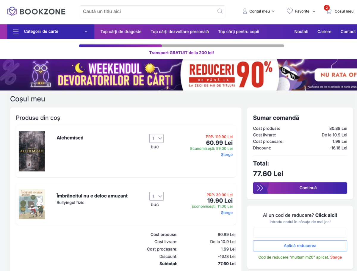 | 2 martie 2026 | Codul ECONOMISESC20 a expirat pentru BookZone |