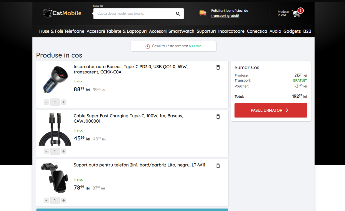 3. Intră pe site-ul CatMobile, alege produsele dorite și adaugă-le în coș.